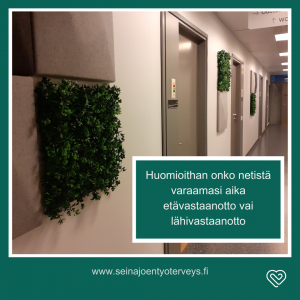 Huomioithan, että nettiajanvarauksessa on sekä etävastaanottoja että lähivastaanottoja.
